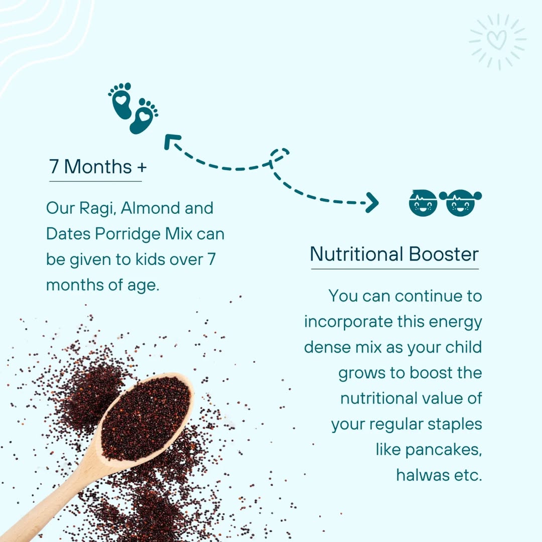 Give your little one the joy of a delicious and nourishing meal with "Ragi Dates Almond" – a perfect balance of taste and nutrition that will leave both you and your baby smiling with every bite.